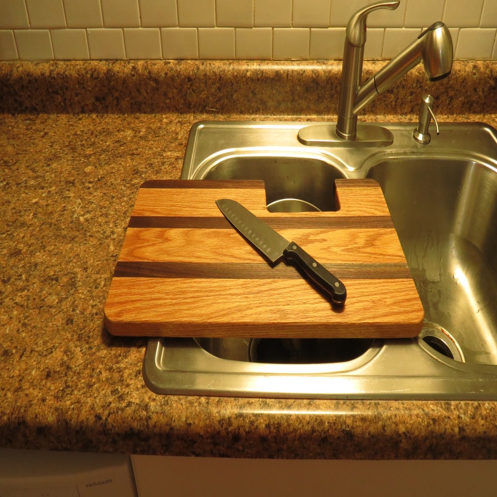 Best Sink Cutting Boards For 2021. 1. The Good Cooking Over The Sink Cutting Board Review. Another reviewer mentions that the cutting board fits her large sink with no issues and that it doesn't slip or slide. She adds that the small collapsible colander is perfect for trash disposal or rinsing small... Island Bamboo Kitchen Cutting Board - Over the Sink Cutting Boards with Collapsible Strainer, Perfect Large Wooden Bamboo Sink Shelf for Chopping, Slicing, and Dicing, Fits Most Sinks. How to make an over the sink cutting board. This is how we took some rough-sawn oak and walnut and